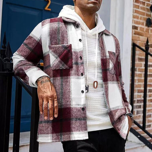 🍁New for autumn✨Men's Casual Thickened Warm Plaid Jacket