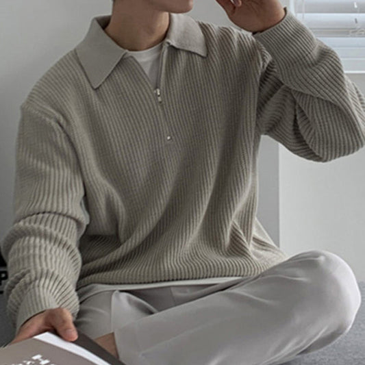 Men's Casual Solid Color Loose Fit Half-Zip Sweater