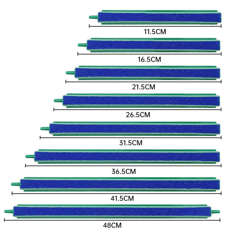 Τα προϊόντα μας είναι κατασκευασμένα από υψηλής θερμοκρασίας πυροσυσσωματωμένο υλικό που είναι ισχυρό και ανθεκτικό. Ενώ είναι ανθεκτικό, έχει καλή διαπερατότητα αέρα, η οποία παρατείνει τη διάρκεια ζωής της αντλίας οξυγόνου. Ρίχνετε προσεκτικά μπλε άμμο για εσάς, έτσι ώστε οι φυσαλίδες αέρα που παράγονται από την αντλία οξυγόνου να είναι μαλακές και ευαίσθητες, να μην φράσσονται εύκολα.Αυτοί Μπάρα φυσαλίδων οξυγόνου για ενυδρείο ψαριών είναι εύκολα στη συντήρηση και μπορούν να καθαρίζονται τακτικά για να διασφαλίζεται η σωστή λειτουργία τους. Και Οι ράβδοι είναι εύκολες στην εγκατάσταση και μπορούν να χρησιμοποιηθούν τόσο σε δεξαμενές γλυκού όσο και σε αλμυρού νερού.