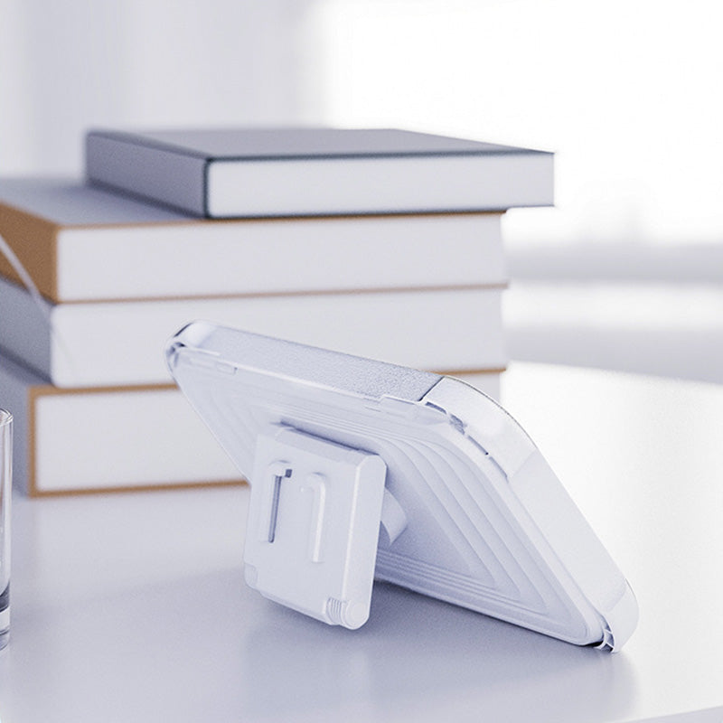 FUNGERER DOBBELT SOM ET SKRIVEBORDSSTATIV: Ikke bare for badet, denne allsidige holderen kan også brukes som skrivebordsholder. Nyt praktisk håndfri visning i alle omgivelser, enten hjemme eller på kontoret.