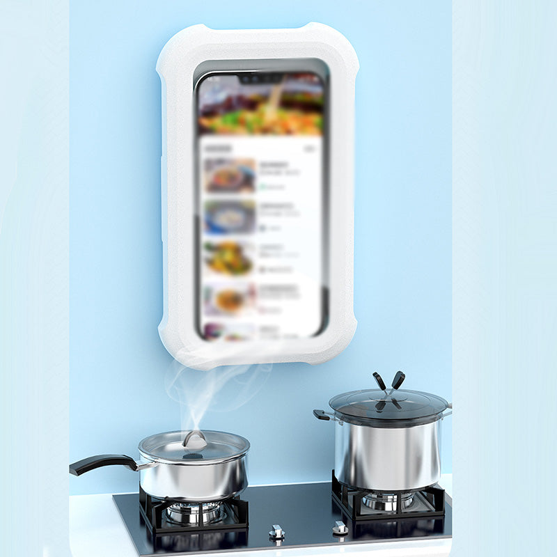 VANNTETT OG DUGGAVVISENDE: Denne telefonholderen er designet for å være vanntett og duggbestandig, noe som gjør den perfekt for bruk i fuktige baderomsmiljøer. Hold enheten din trygg og synlig mens du dusjer eller slapper av.