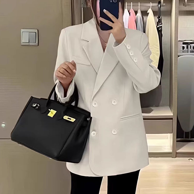 Pakken inneholder: 1 * Stilig ensfarget dameblazer med løs passform