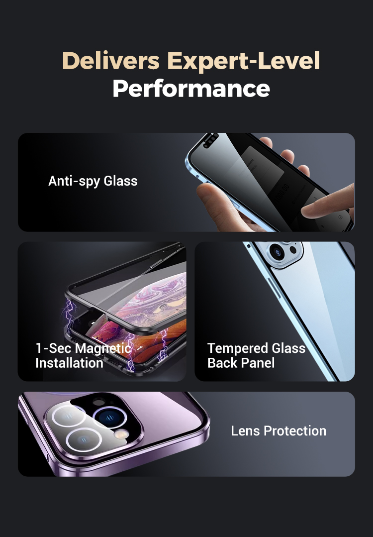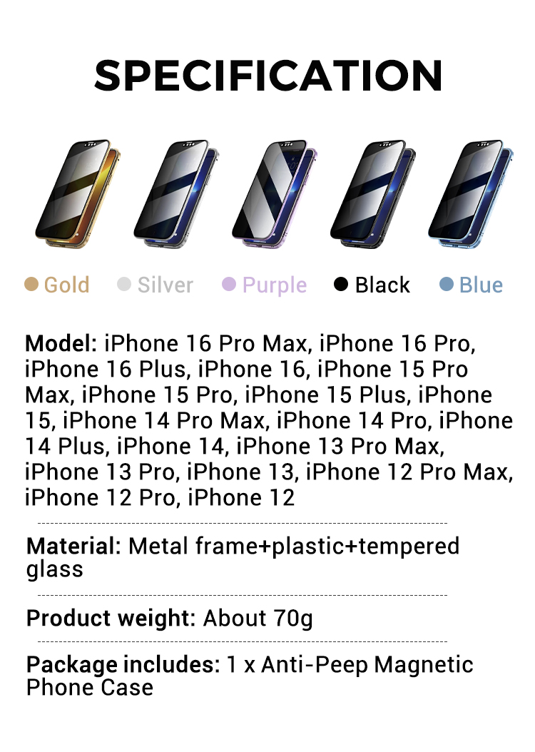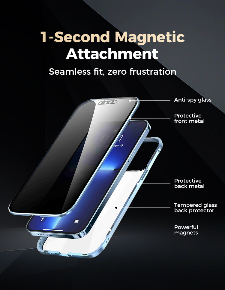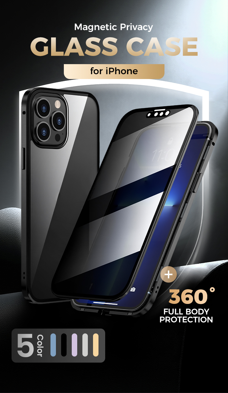 Magnetic double-sided anti-peep glass mobile phone case for iPhone