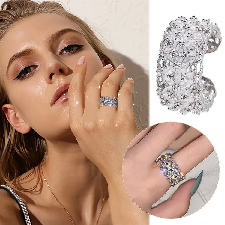 GIFT IDEA - It is the perfect gift for any special occasion. Featuring brilliant zirconia set in a wide band, this beautiful ring is sure to make a lasting impression. With its timeless design and unparalleled quality, the Women's Zirconia Band Ring is a luxurious and luxurious gift that will be treasured for years to come.